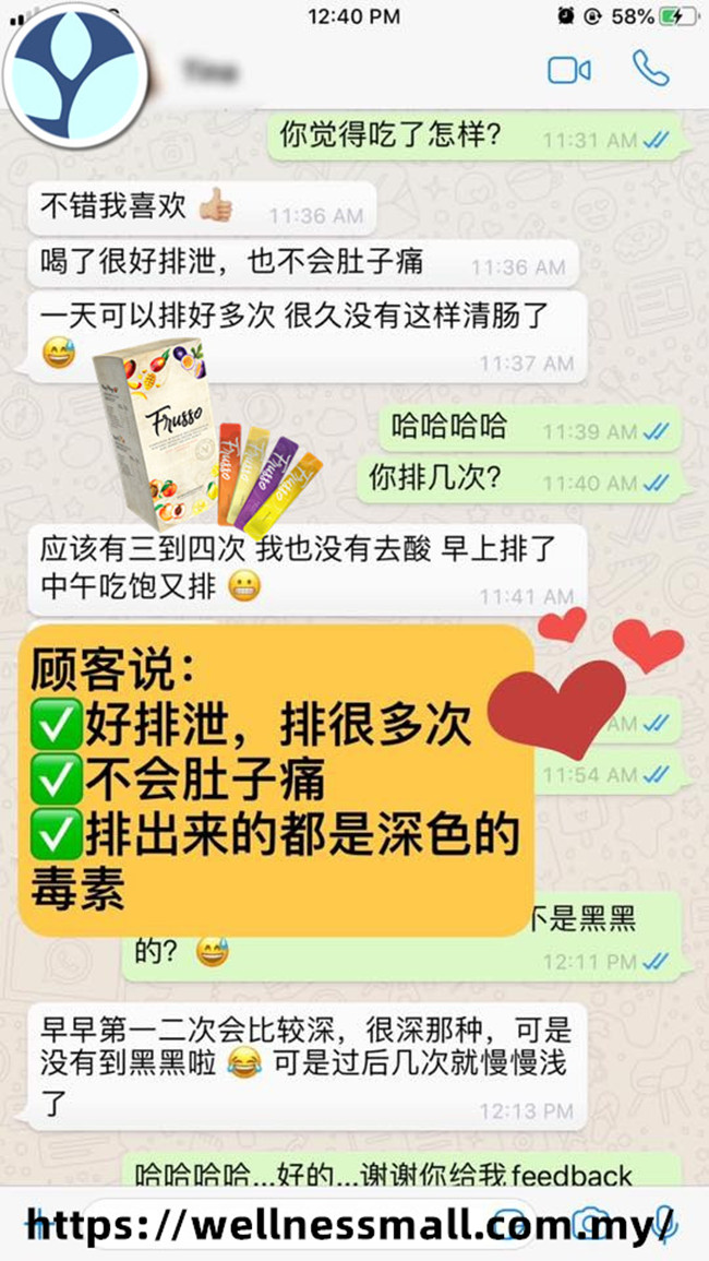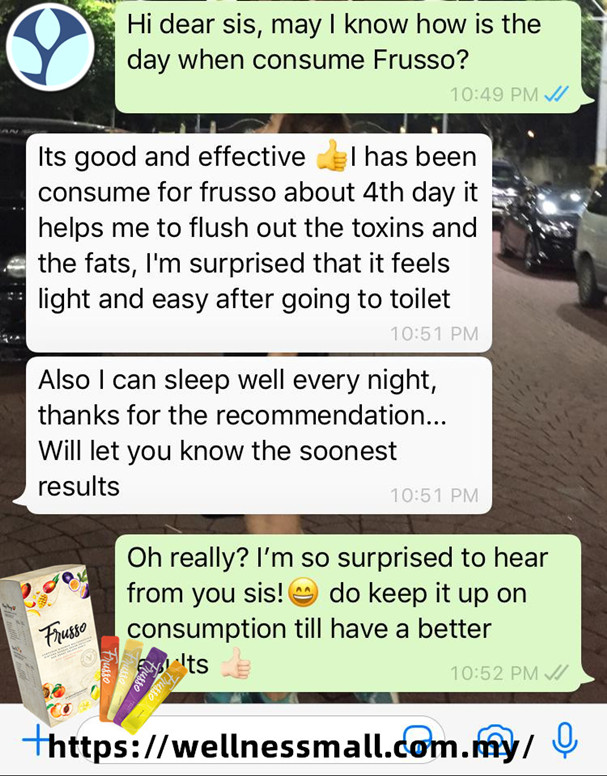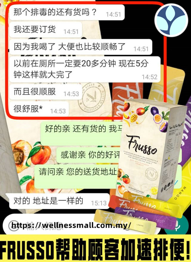 膳食纤维将与宿便融合,以增加宿便体积和重量,扫过肠道墙刮走宿便,并刺激肠道 蠕动,从而改善便秘情况。Frusso含有益生菌的营养素—益生元,有助于益生菌繁殖之余也能减少坏菌生长 以维护肠道健康。