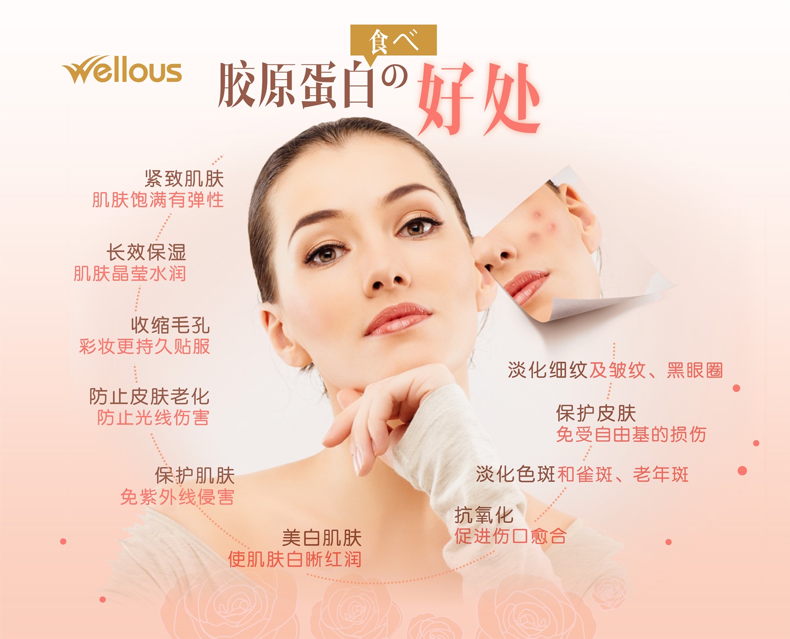 M-COLL蕴含天然的葡萄、橙和草莓成分,这些成分中含有 谷胱甘肽。