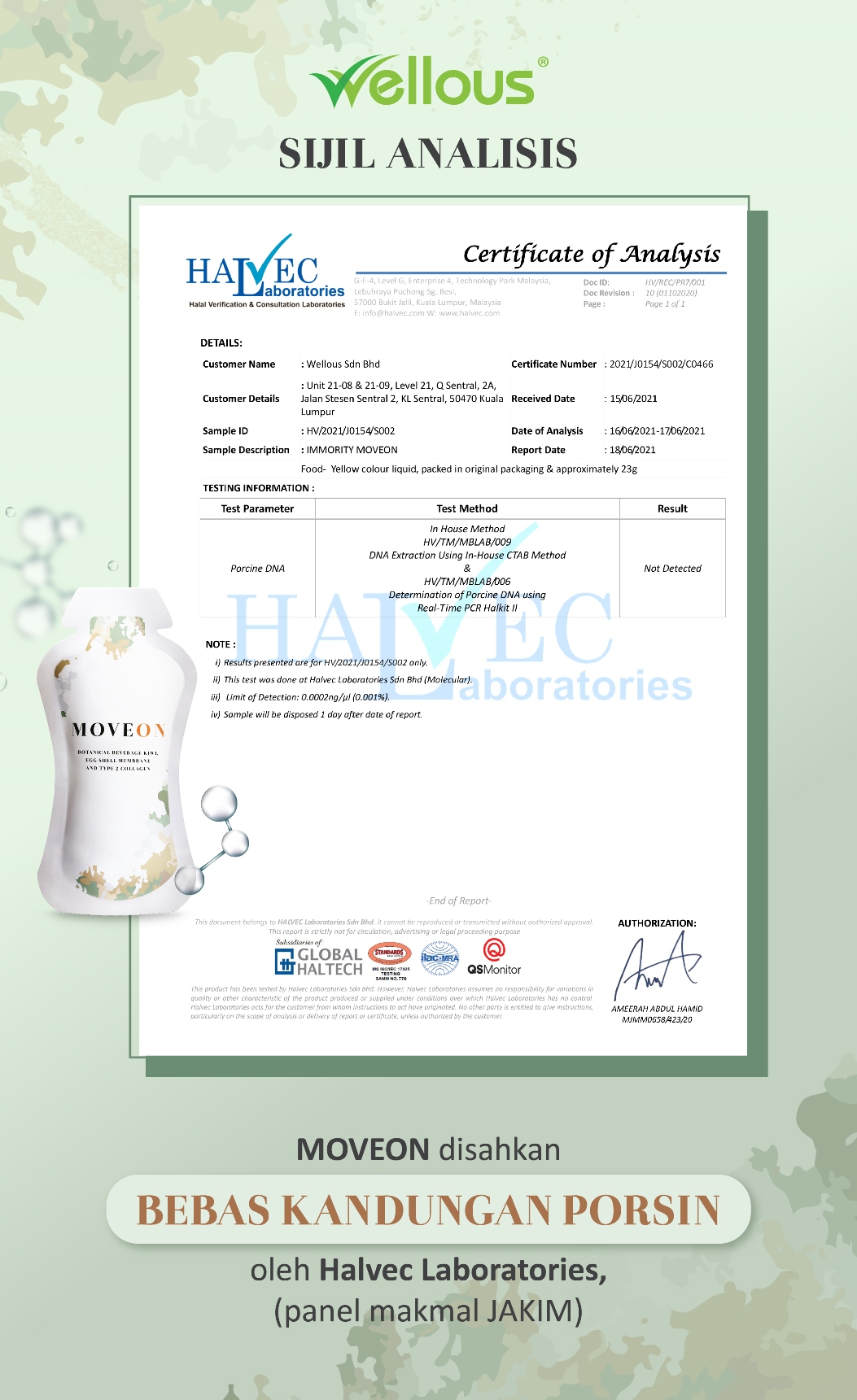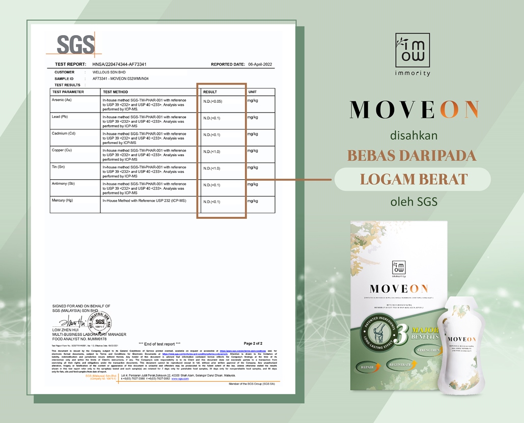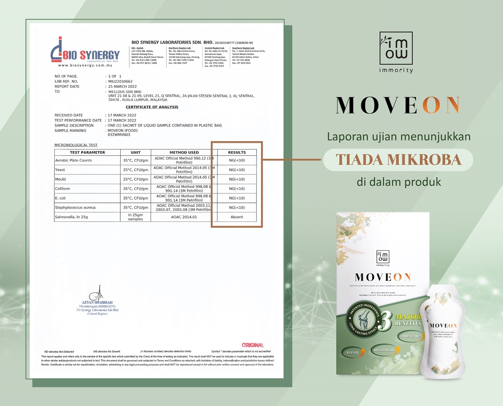 In order to ensure that our MOVEON can be sold safely, MOVEON has undergone strict quality inspection in the laboratory, and KKM and NPRA are classified as food product. The above are the lab reports, moveon is free of Microbes and heavy metals, and also does not contain any gluten allergens.